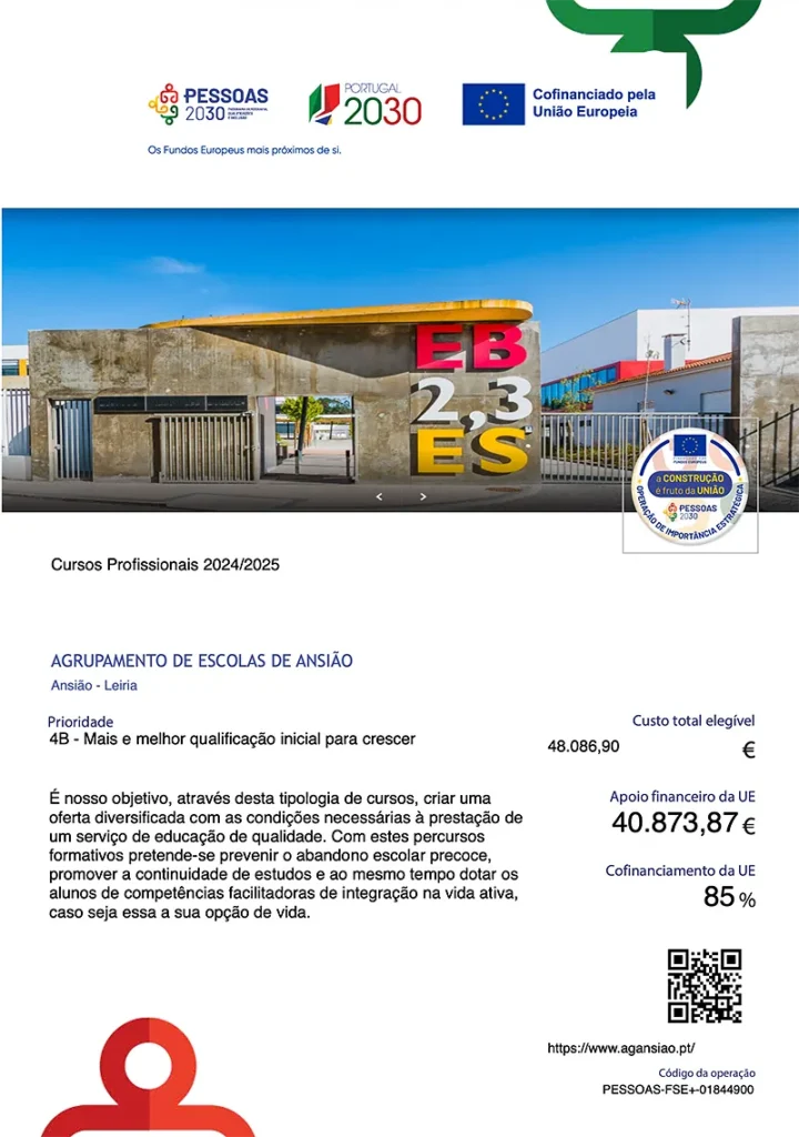 Cursos Profissionais 2024/2025 - Cofinanciamento