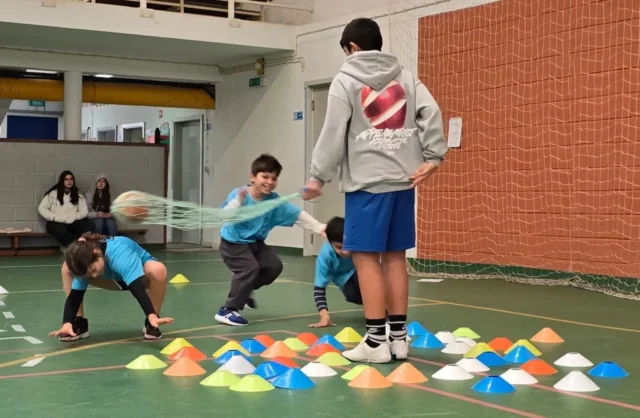 Ao longo da tarde, os participantes passaram por sete estações desportivas, onde tiveram oportunidade de experimentar e praticar atividades tão variadas como andebol, basquetebol, voleibol, futebol, tiro com arco, Boccia e o divertido jogo do cowboy. A diversidade das propostas permitiu que todos os alunos encontrassem desafios adequados aos seus interesses e ritmos, promovendo a inclusão, a cooperação e o espírito de equipa.